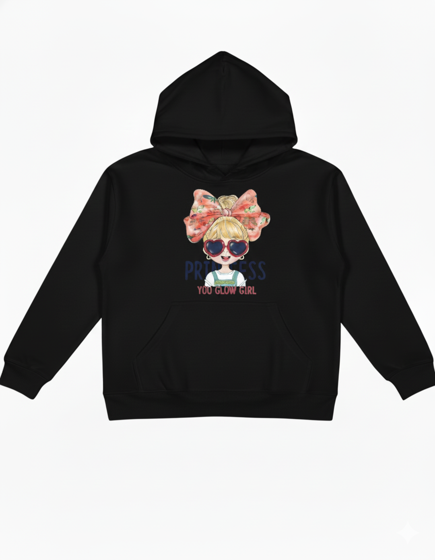 Vibe: The overall aesthetic is bold, confident, and cute, combining a fun, feminine style with the cozy comfort of a black hoodie.