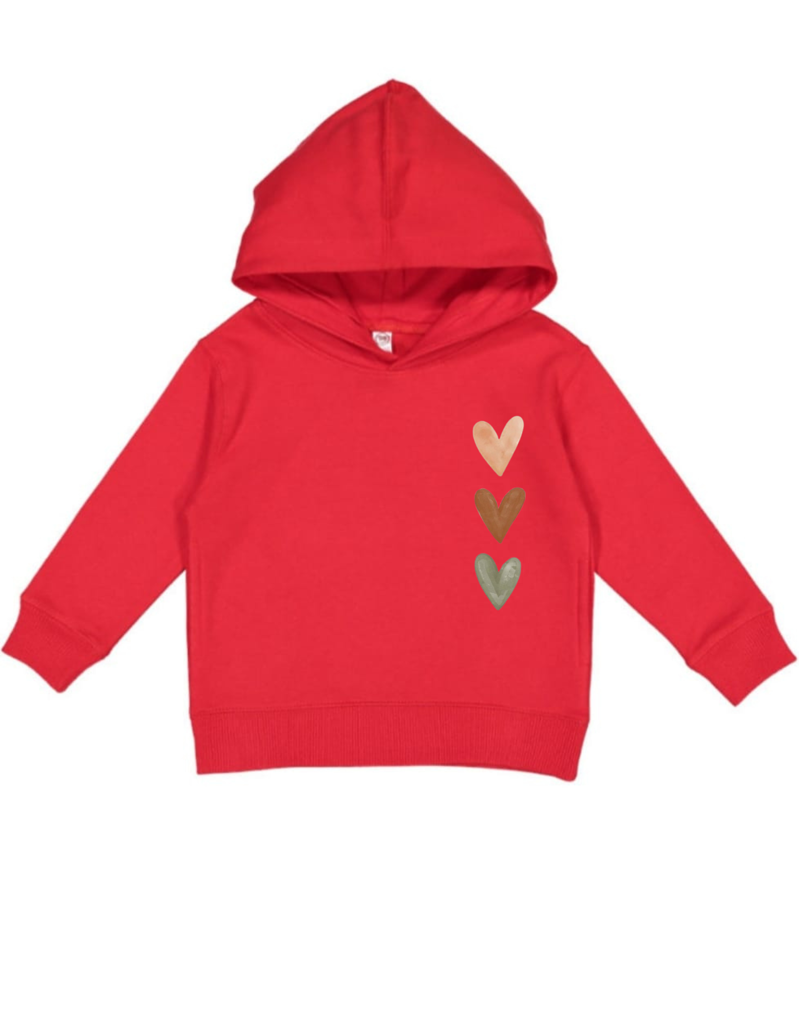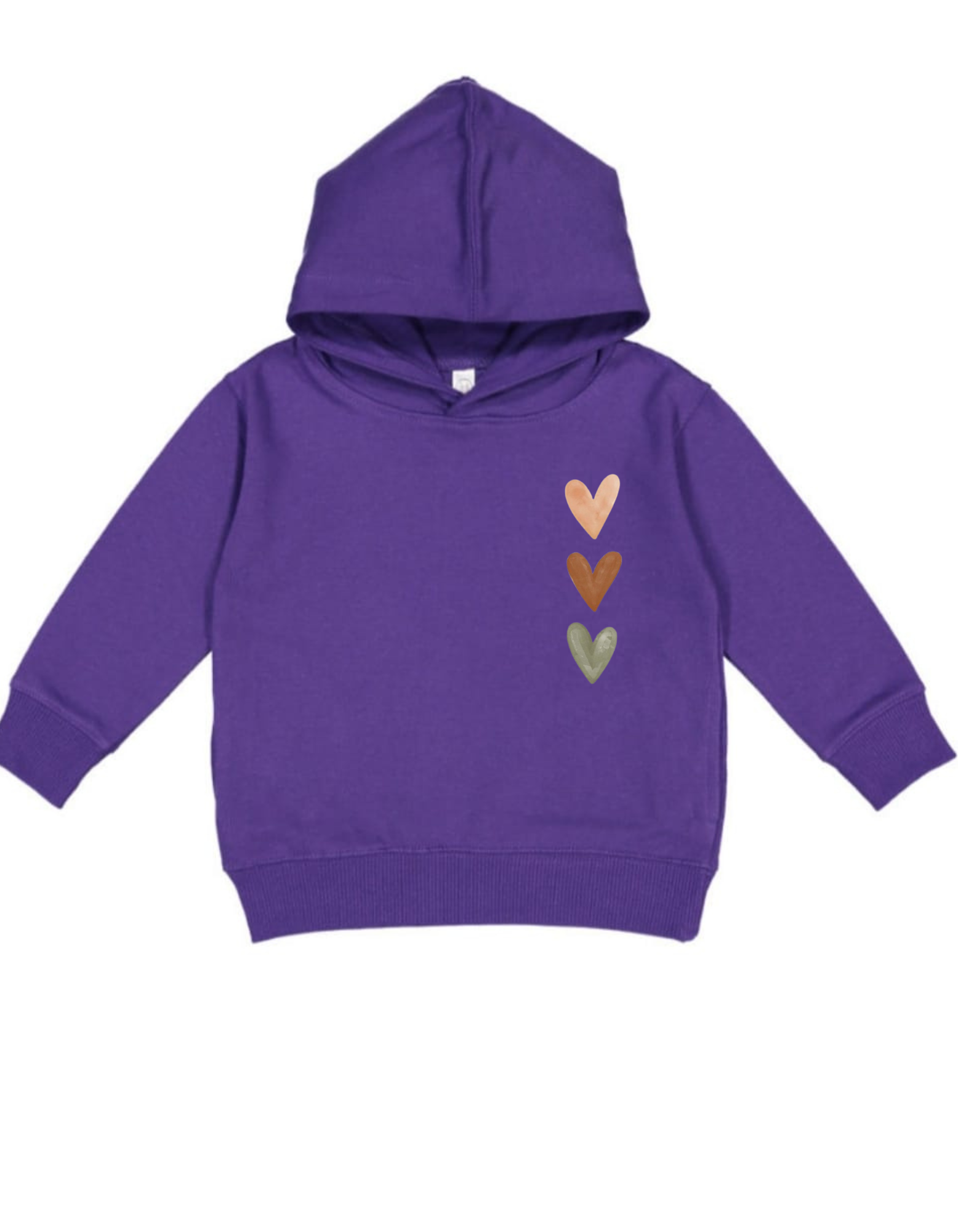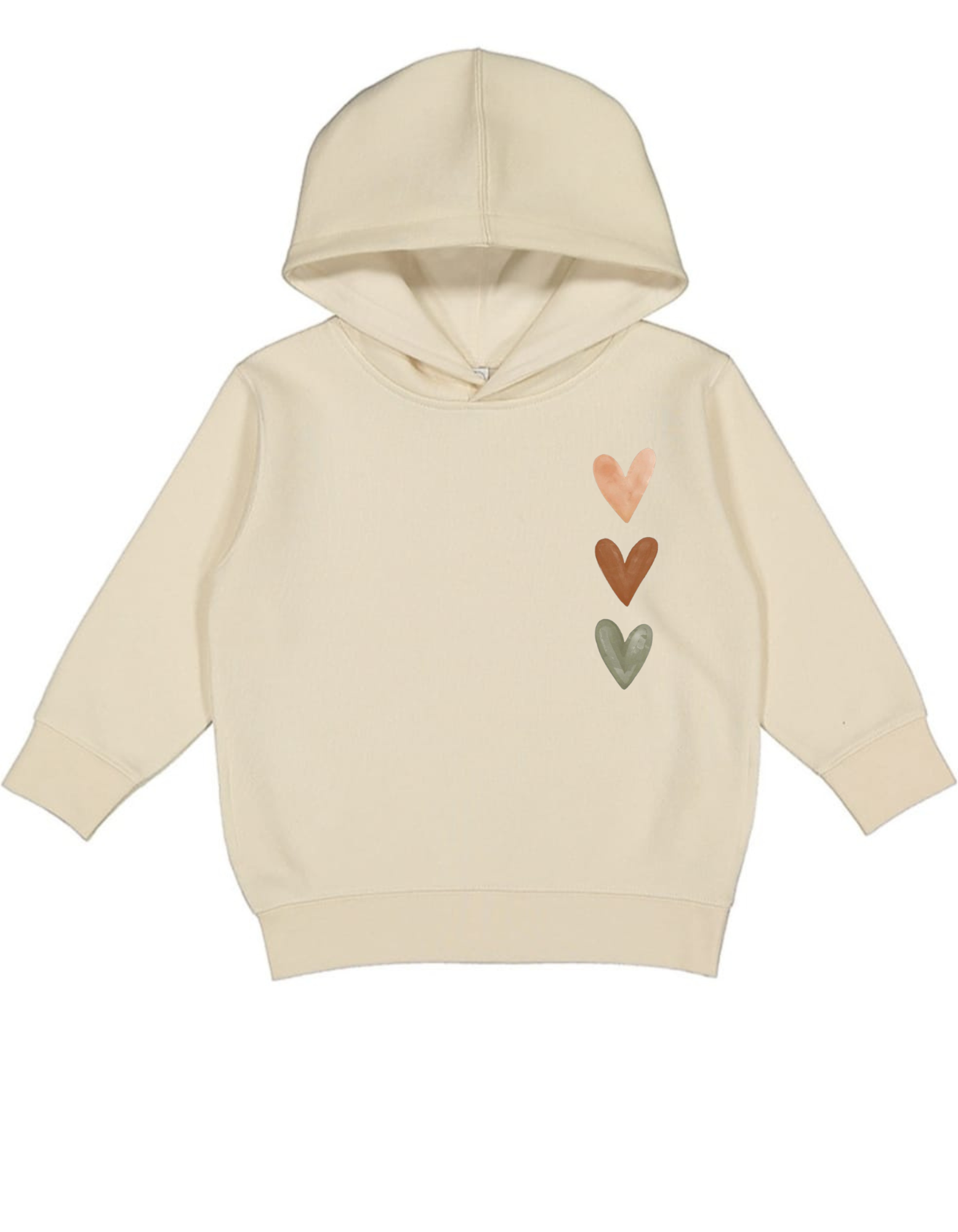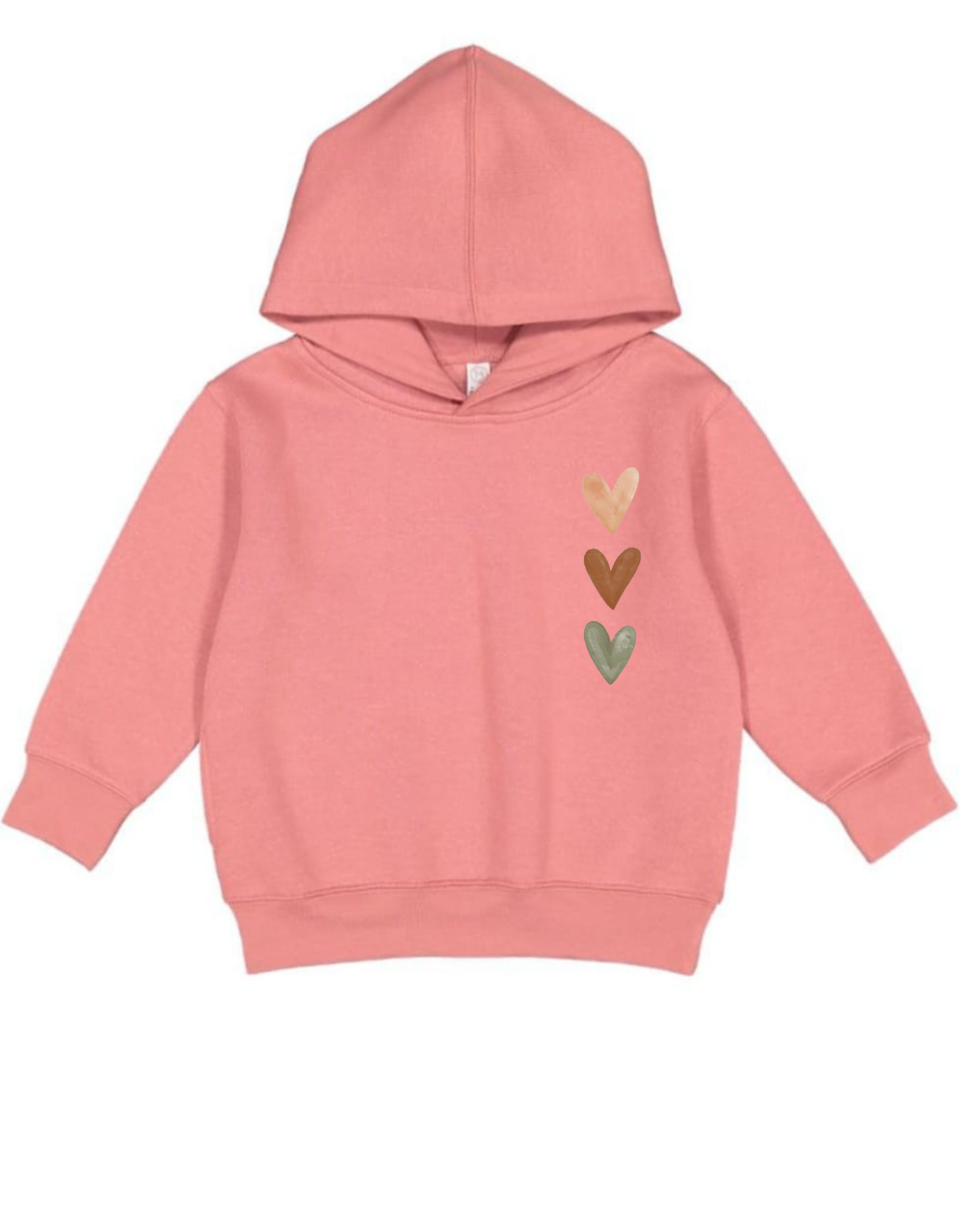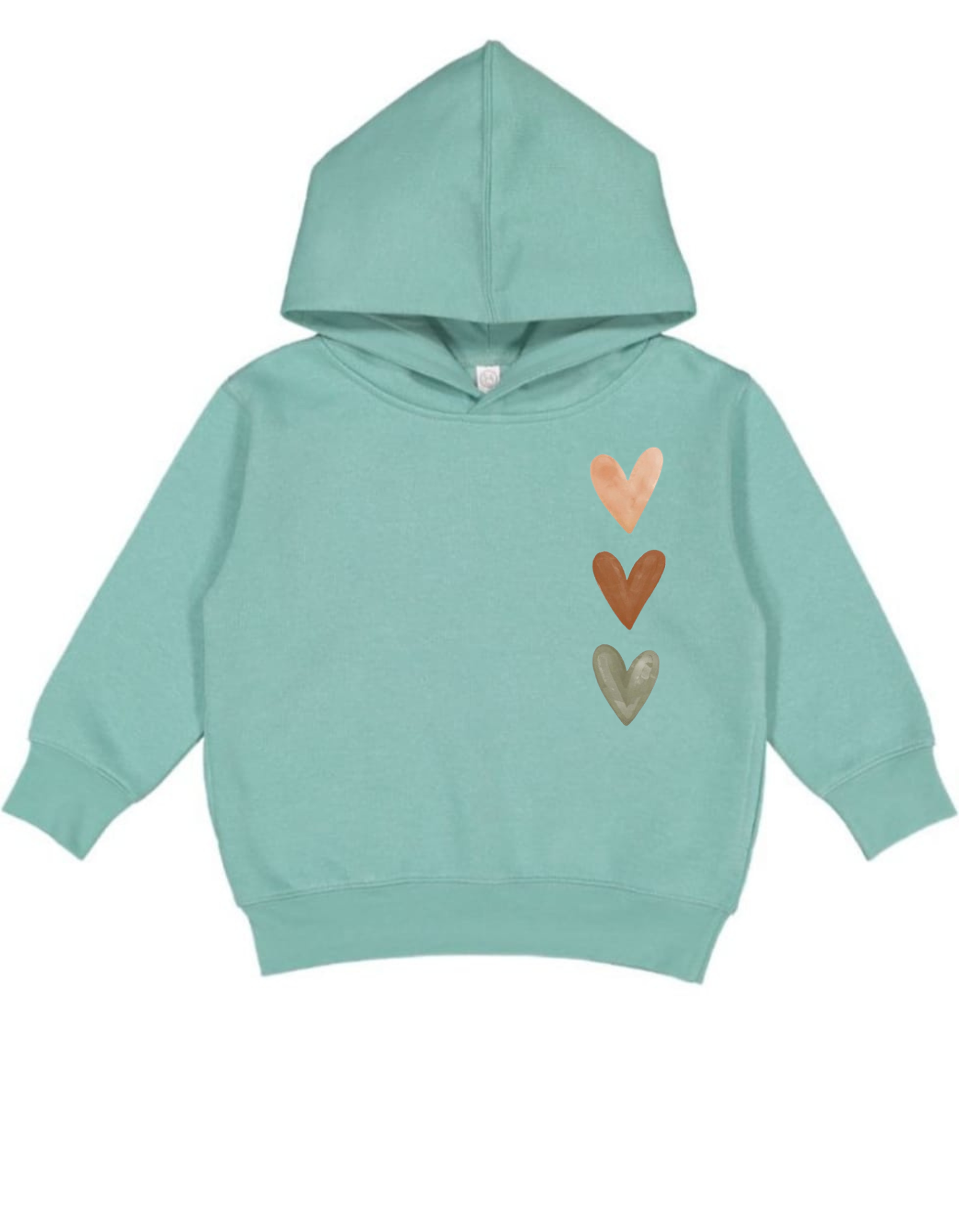 Color Palette: The hearts are rendered in muted, earthy, or bohemian tones, providing a subtle contrast to the pastel hoodie color: