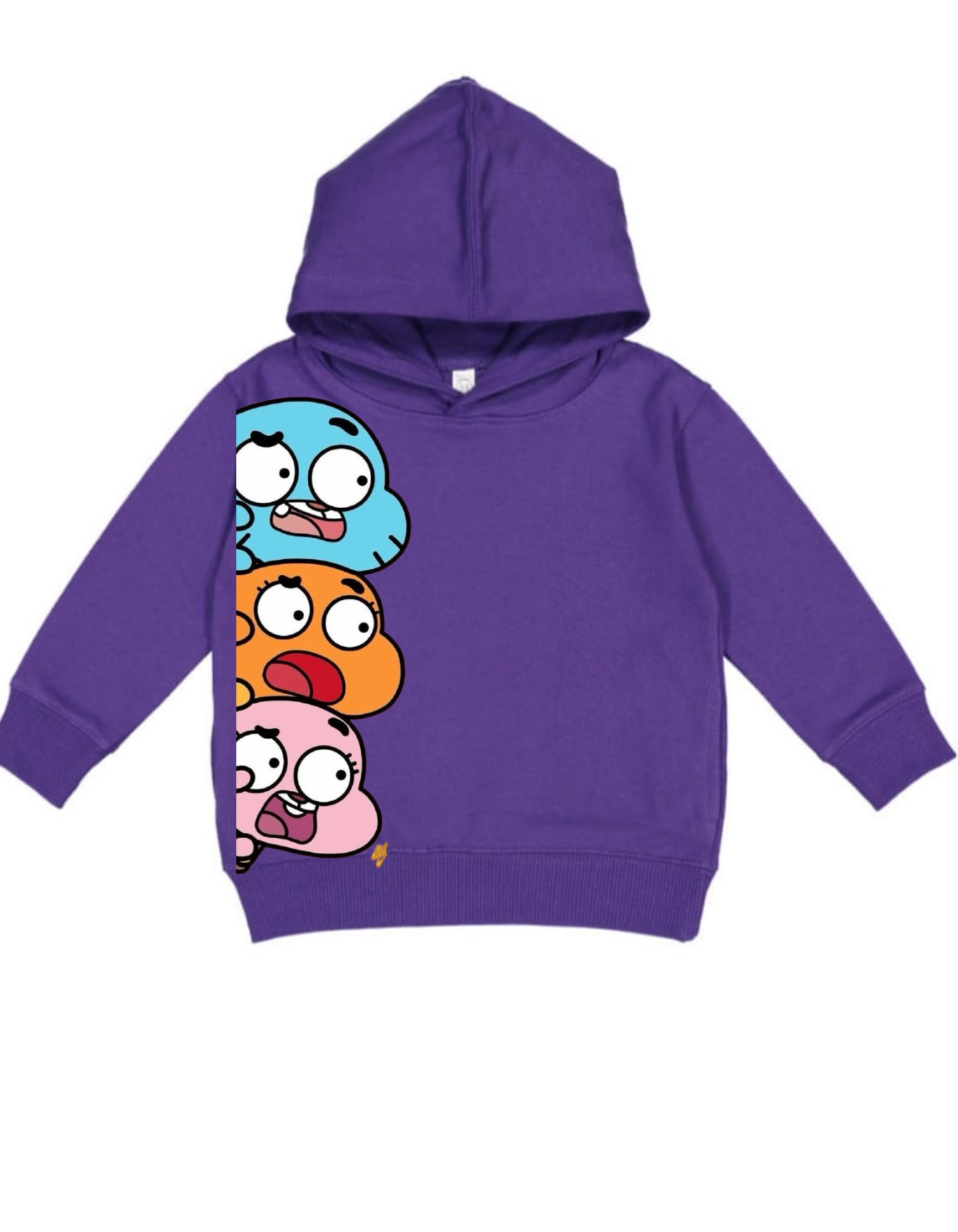 Get ready for some cartoon chaos with this vibrant purple pullover hoodie featuring the hilarious Watterson siblings from The Amazing World of Gumball.