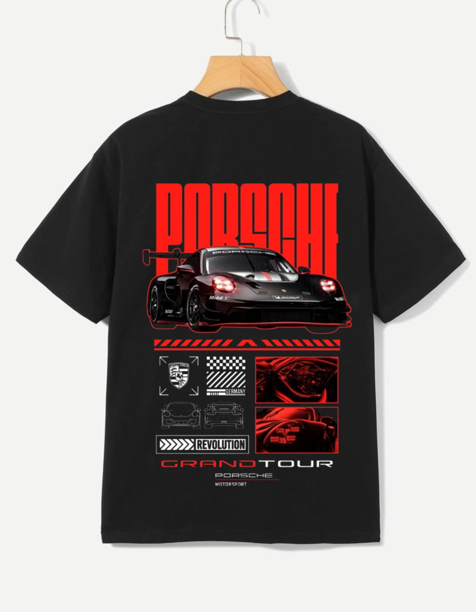• Design: Back graphic featuring a Porsche 911 GT3 with racing typography and technical blueprints