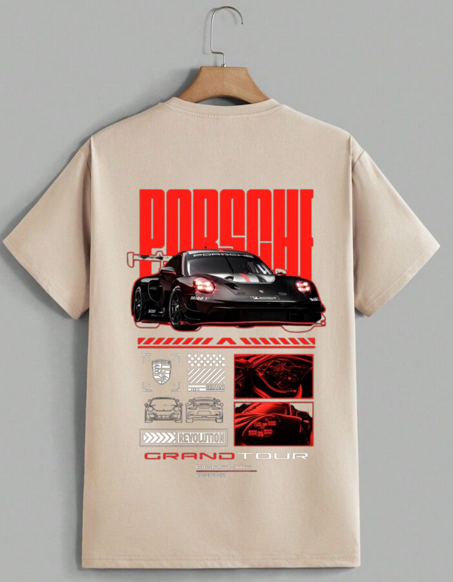 Accelerate your street style with this high-octane Porsche 911 GT3 Grand Tour Dropshoulder T-shirt.