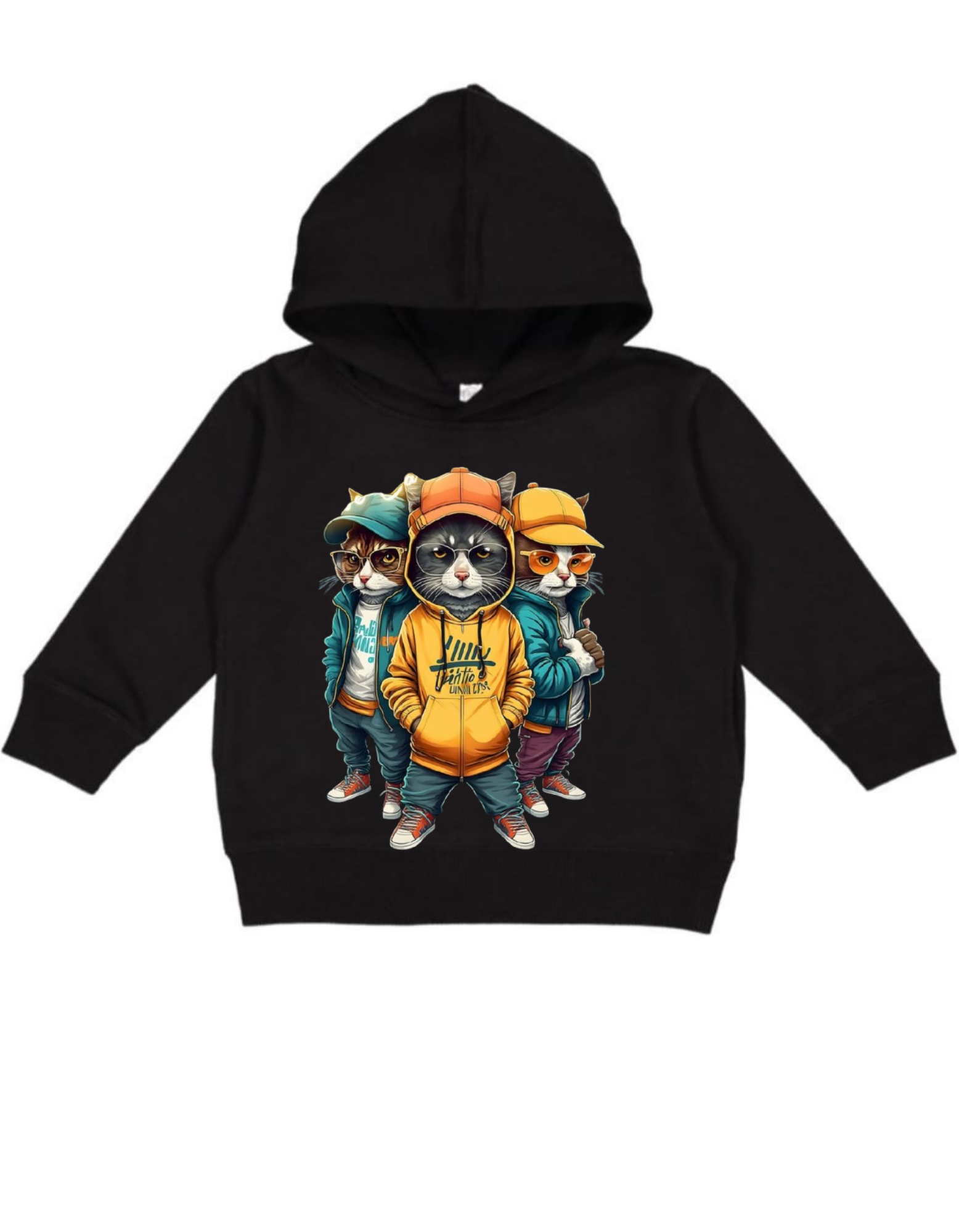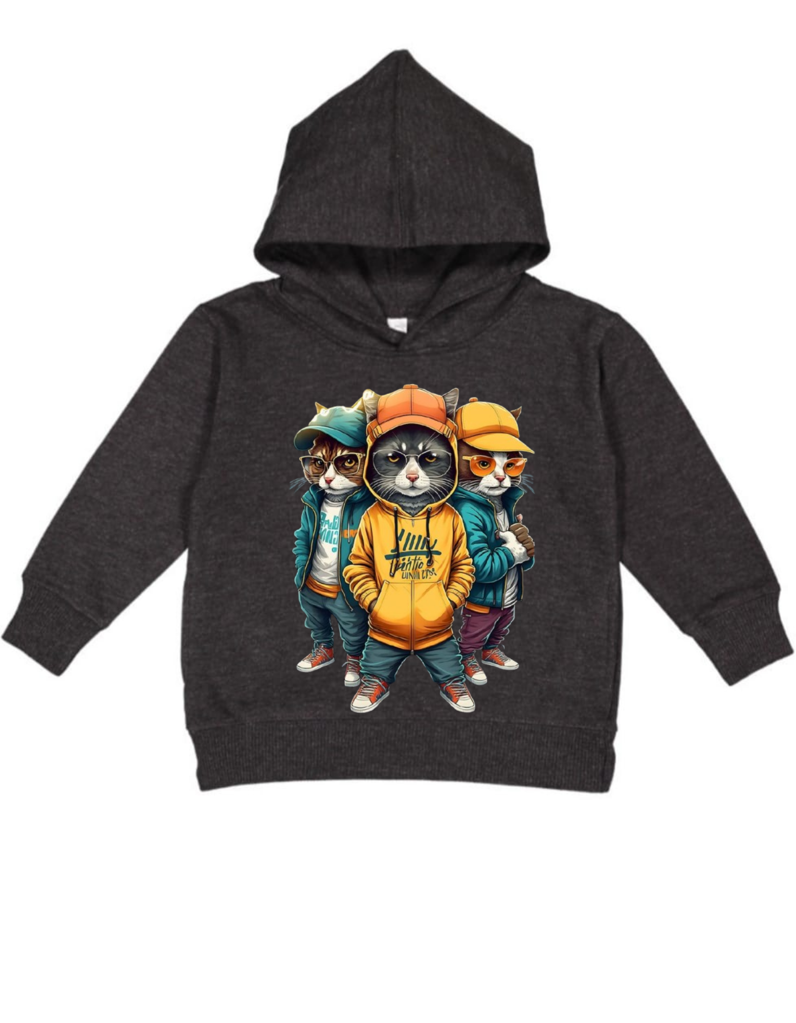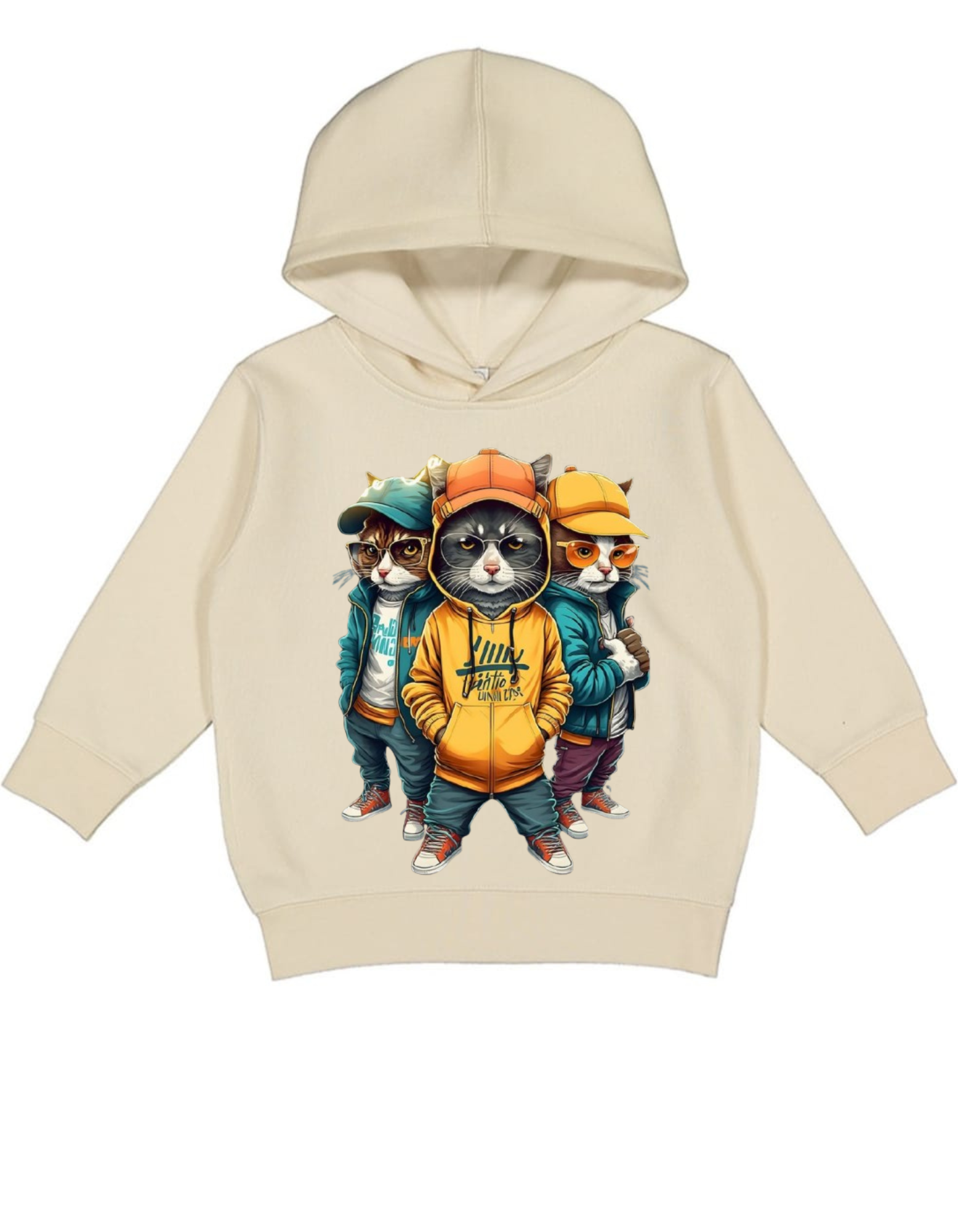 Let your little one rock the coolest look in town with this Street Style Cat Crew Hoodie! Featuring three cartoon cats dressed in trendy urban outfits, this design brings fun, attitude, and personality to every outfit.