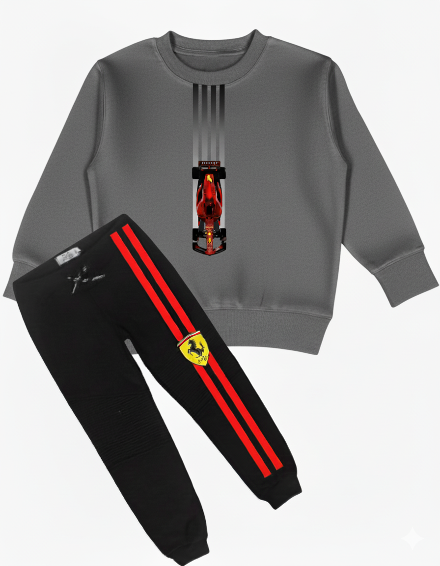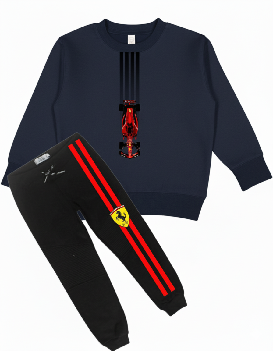 🇮🇹 Ferrari Race Stripe Fleece Set (Ages 2–6)
