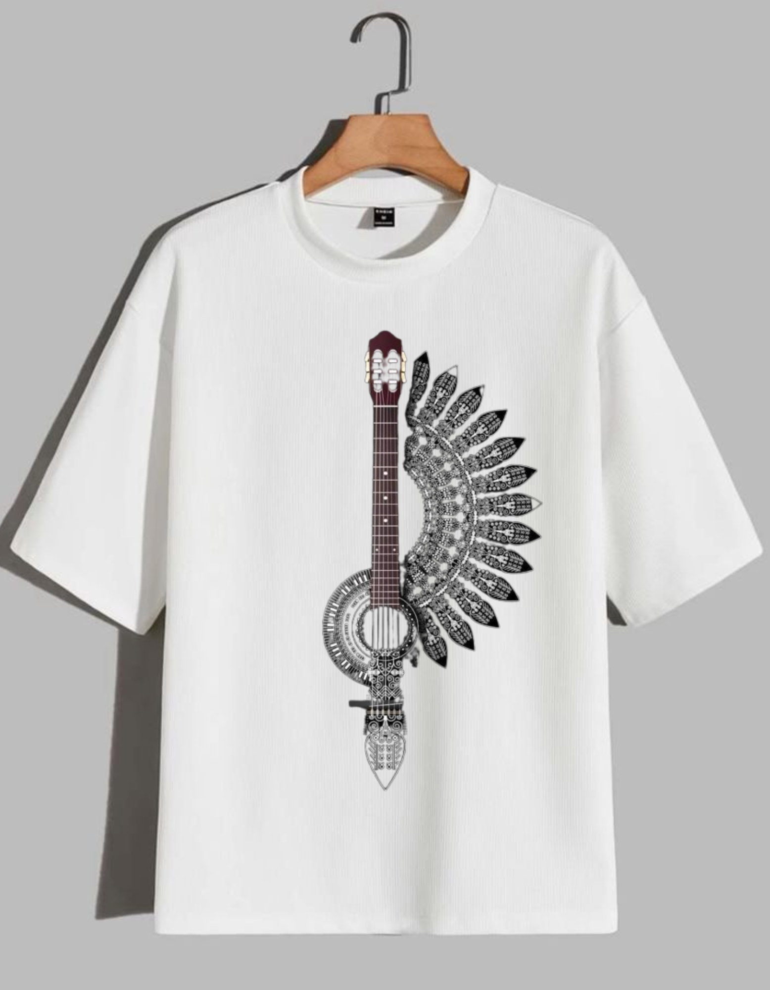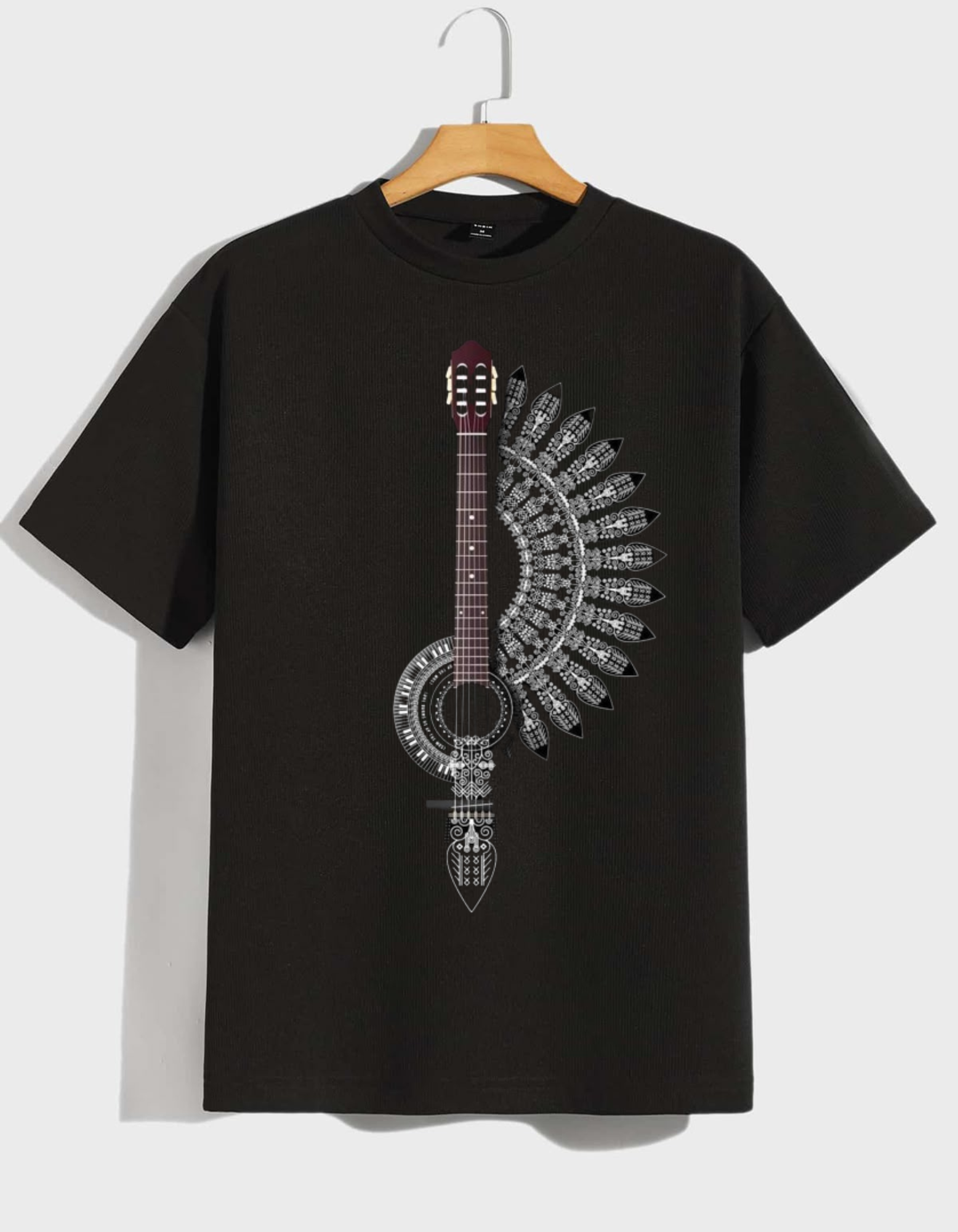 Tune into laid-back, artistic style with this unique Guitar Wing Tribal Dropshoulder T-shirt.